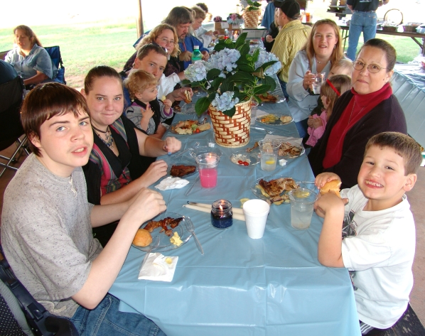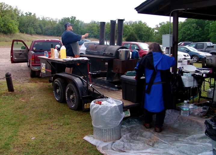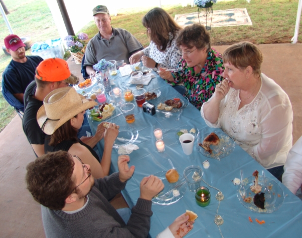 Overnight and on into the late morning and early afternoon, wind and rain buffeted our preparations for a special Saturday celebration at Zoom Beach, Lake Thunderbird state park. The goal was to have family and friends join in on the party, with a simulated version of the marriage ceremony. Fine smoked barbecue was provided by Heather and Michael's SCA friend John McCuan ...