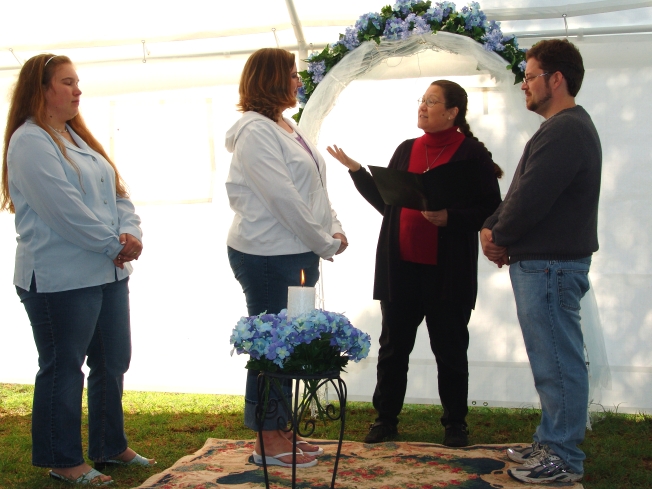 The ceremony, underway. To the left is Katie Mosely, the bridesmaid and another longtime friend of Heather's.