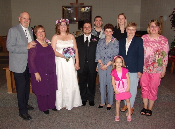 All the family members present (except Vickie's camera-shy sister Carol) after the ceremony - Heather's family on the left and Michael's family on the right.