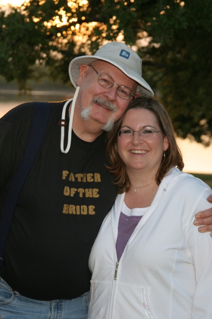 This great shot of Heather and me was taken by Vickie's brother, Mel, shown below with his lovely wife, Brenda. Mel is a professional photographer (among other things), who shoots weddings and portraits. He's obviously an outstanding photographer, I think you must agree. It was great having them able to be here for the wedding, and a little beyond!