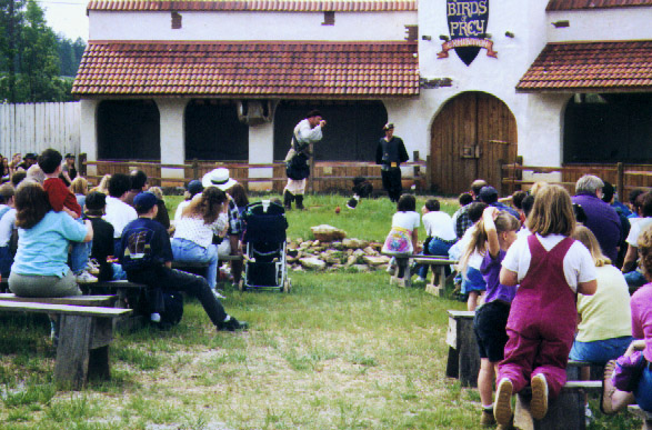 There was a bird show. One of the raptors flew between a man's legs. That's not a mouse!